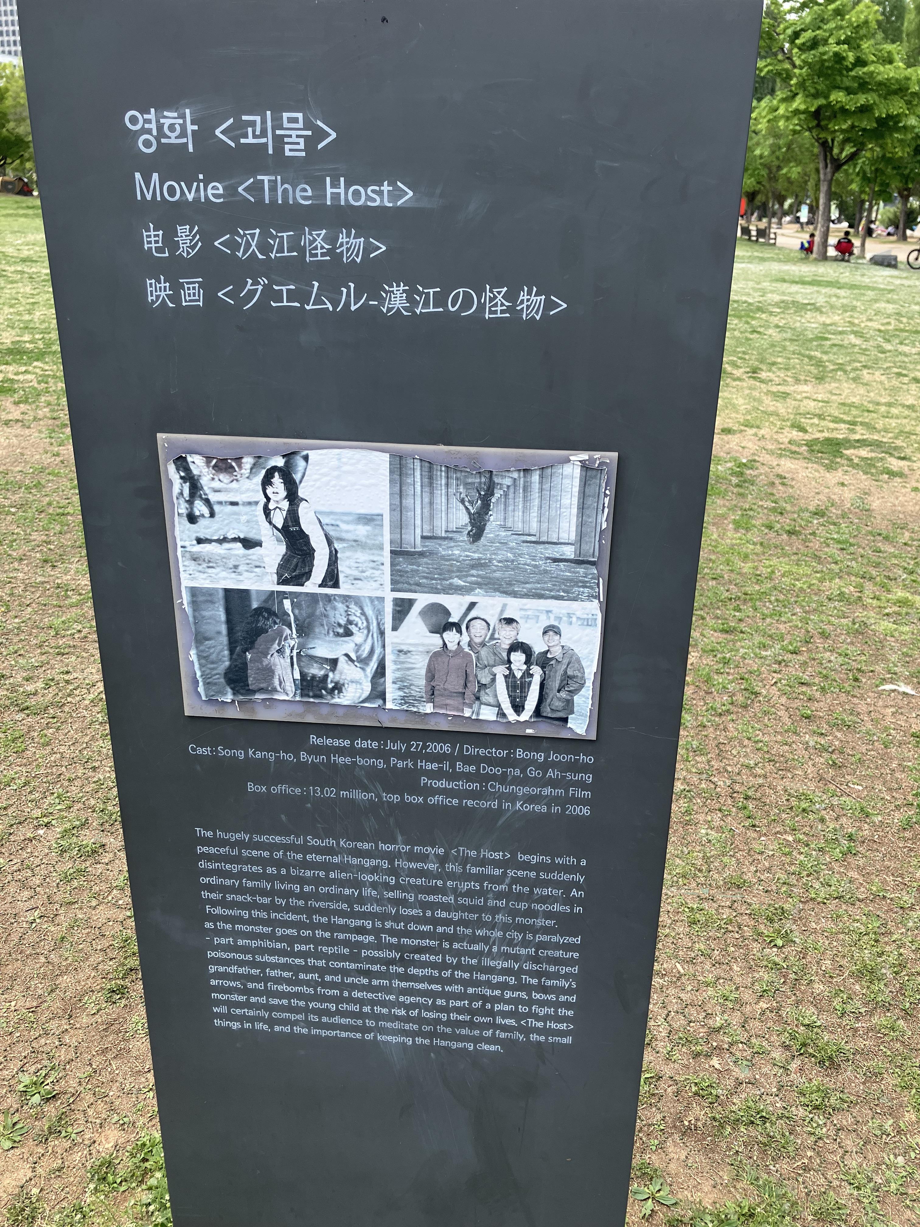 얼마나 대단한 걸 놓으려고 이걸 굳이 철거하겠다고 광고를 해댄 건지 잘 모르겠지만 <괴물> 동상 이상의 존재감을 가질 수 있을까 싶어진다. 찾아보니 한강공원에서 배달시킬 때 <괴물> 동상 앞이라고 하면 다들 알아들었다는 말도 있던데 공원에서 랜드마크가 되는 것의 기준이란 게 뭘까 싶기도 하고.